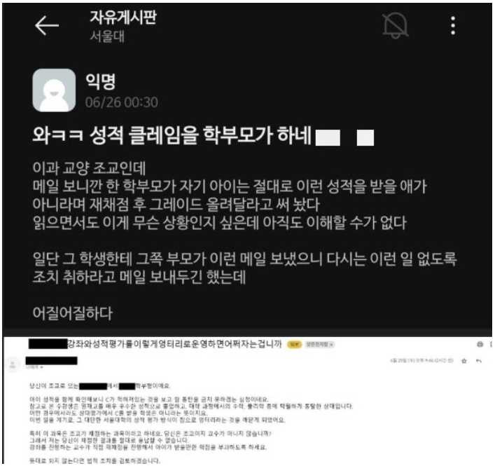 요즘 대학생은 학부모가 성적 이의 신청을 하는군요 작성자 정보 바바쪽지보내기쪽지보내기 작성 작성일 2025.06.27 16:10 컨텐츠 정보 20,718 조회 0 추천 0 비추천 목록 신고 신고 관리 글수정 글삭제 본문 0 추천 추천 비추천 0 비추천 관련자료 댓글 0 등록된 댓글이 없습니다. 로그인한 회원만 댓글 등록이 가능합니다. 목록 신고 신고 관리 글수정 글삭제