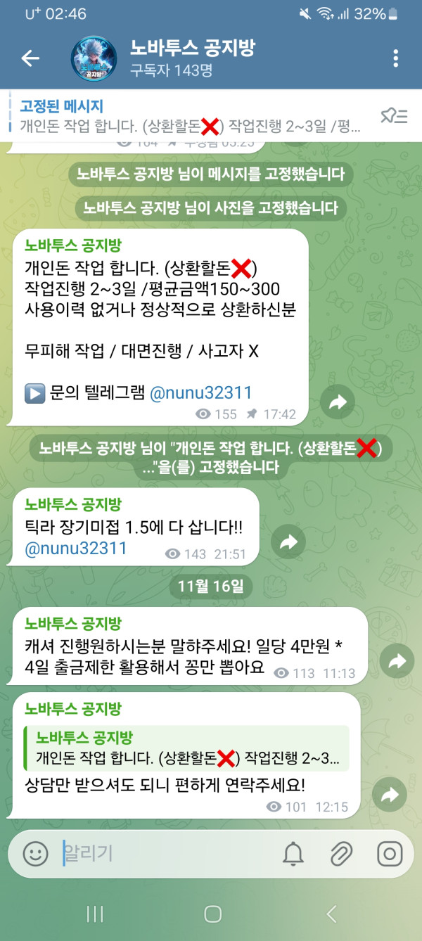 ▶️ 문의 텔레그램 @nunu32311