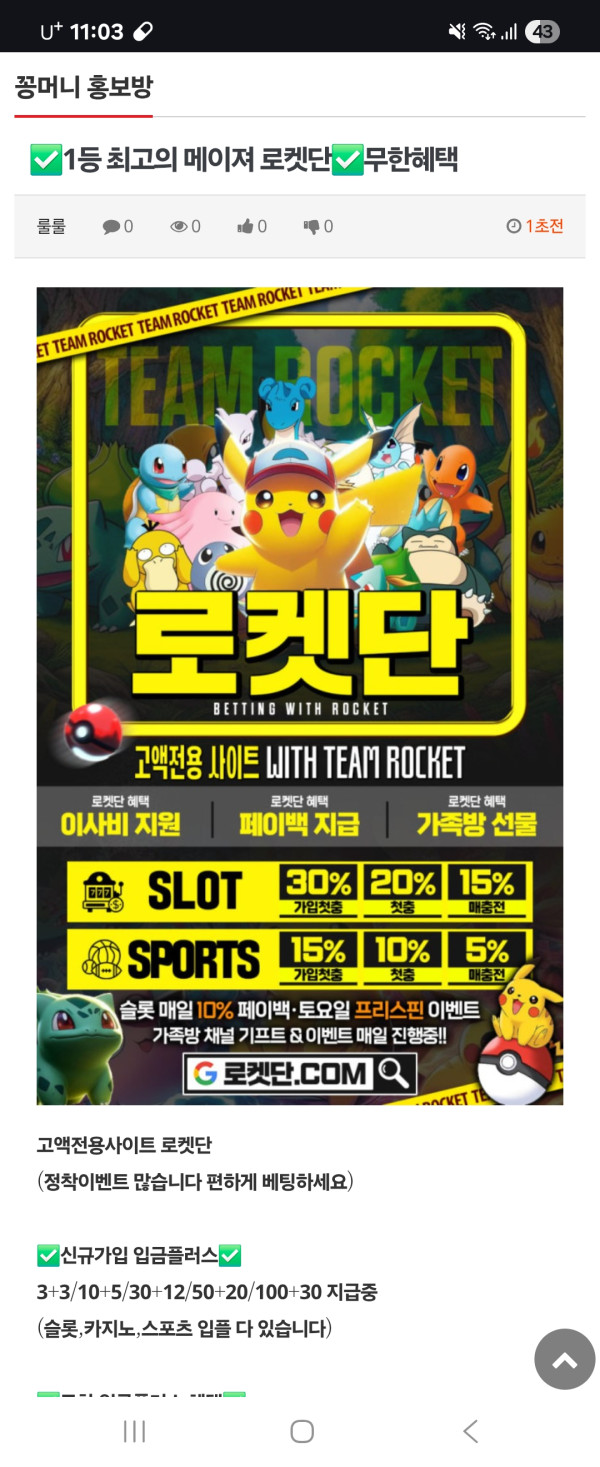 ✅1등 최고의 메이져 로켓단✅무한혜택