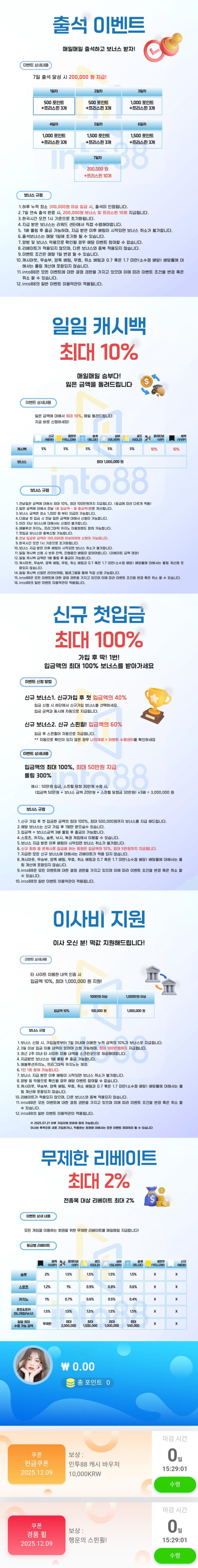가입꽁1만+이사비100만+출석20만+매일캐시백10%