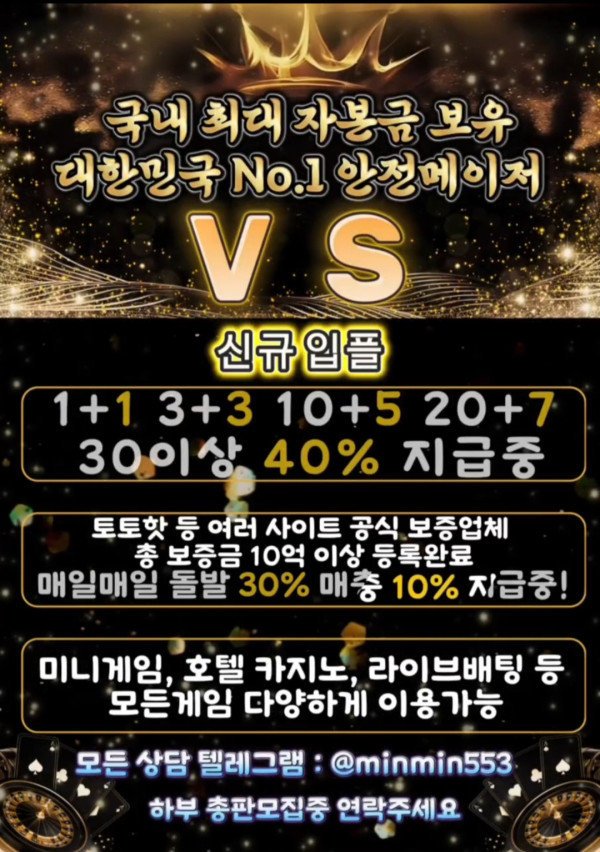 ❤️최강 안전메이저 [VS] 신규첫충 1+1 3+3 10+5 20+7 30이상부터 40%❤️