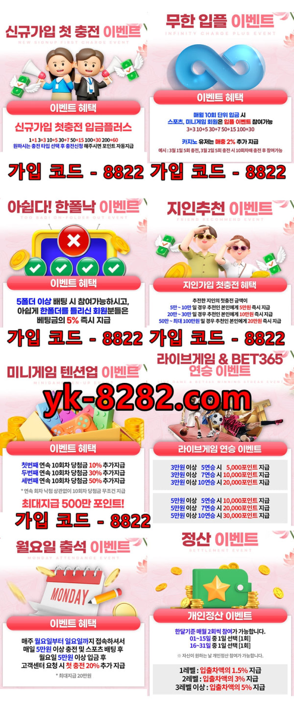 ★ 각종 이벤트 - 신규첫충/ 매충 / 무한입플 / 위로금 / 한폴낙 / 하루두끼 등등