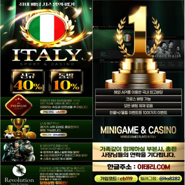 (이태리) 최고 이벤트 무한혜택 첫충 매충 무사고 출금 다양한 게임