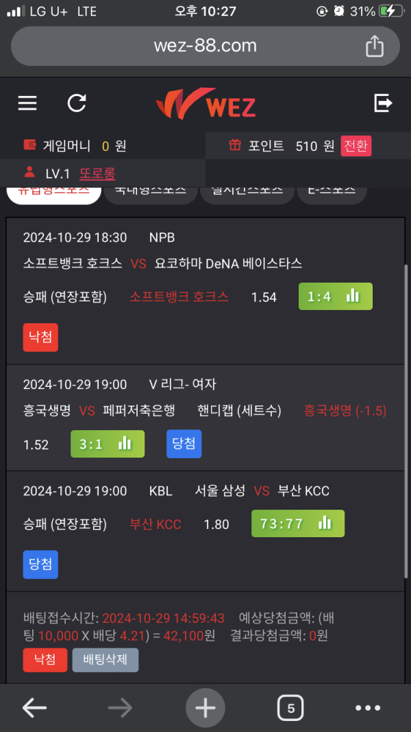 믿고이용할수있고 스포츠도 진짜 다양하게 있어서 배팅쉬는날이없습니다 ㅋㅋ무엇보다 가장마음에드는점은 스포츠낙첨 및 롤링 컴프도 쌓인다는점 일주일에한번씩 받는맛이 아주 쏠쏠 합니다