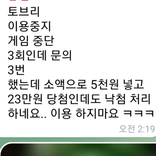 토브리 요즘 자기들이 규정위반하고 몰수당한거 사이트 탓하고 텔레방, 커뮤에 먹튀당햇다고 올리는사람 하도 많아서 글 한번 올립니다 토브리 지금 몇개월이상 이용햇고 환전도 5분이상 걸린적 단한번도 없습니다..ㅋㅋㅋ 괜히 악성배터 말 듣고 꺼려하지마시고 이용 증말로다가 괜찮습니다 이벤트도많아요 절대믿지마세요