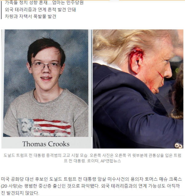 “평범 중산층 20세, 아빠 총 들고 나와…트럼프 쐈다”
