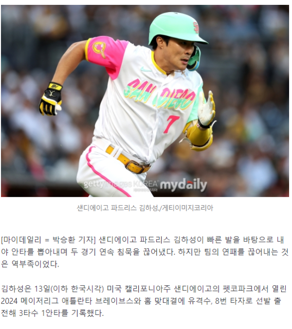 '뜬공→뜬공→안타' 김하성의 폭풍질주, 2G 연속 무안타 탈출…'심각한 타선 침체' SD 결국 5연패 못 끊었다